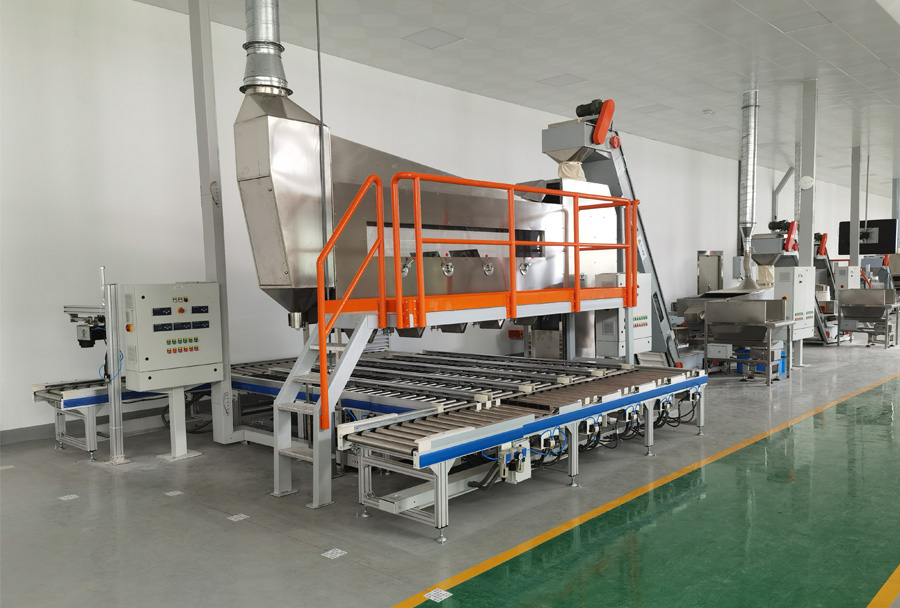 主要工藝:上料-除鐵、除石-圓篩→抖篩-風選
